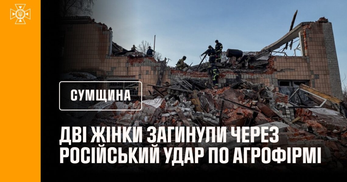 Дві жінки загинули через російський удар по агрофірмі на Сумщині: рятувальники розбирають завали.