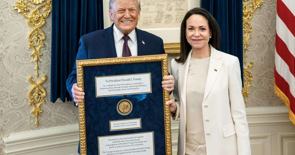 Лідер опозиції Венесуели Марія Коріно Мачадо під час зустрічі з президентом США Дональдом Трампом віддала йому свою медаль Нобелівської премії миру. Фото, де Трамп тримає медаль, було опубліковане Білим домом. Трамп висловив задоволення та вдячність за цей жест Мачадо. За даними телеканалу CNN, Мачадо залишила медаль у Білому домі. Нагадаємо, що Нобелівська премія миру є найвищою нагородою, яку не можна скасувати, поділити або передати іншим.