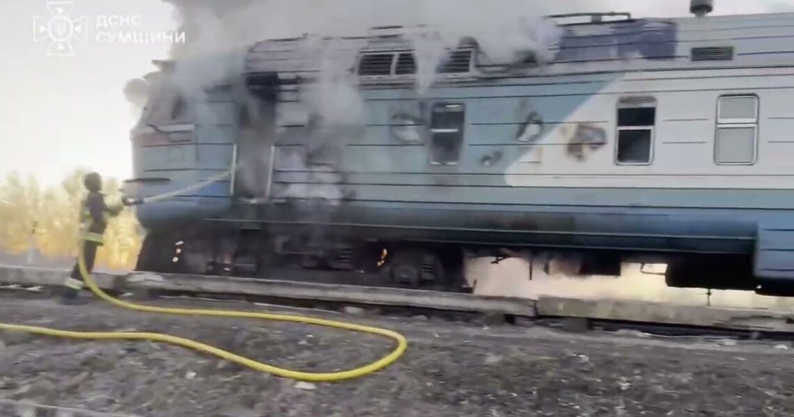 Сьогодні о другій половині дня у Верхньосироватській громаді російський БпЛА вдарив по приміському потягу сполученням «Смородине — Ворожба». Внаслідок удару загорілася кабіна машиніста локомотива-штовхача. Також горіння відбувалося на відкритій території.
