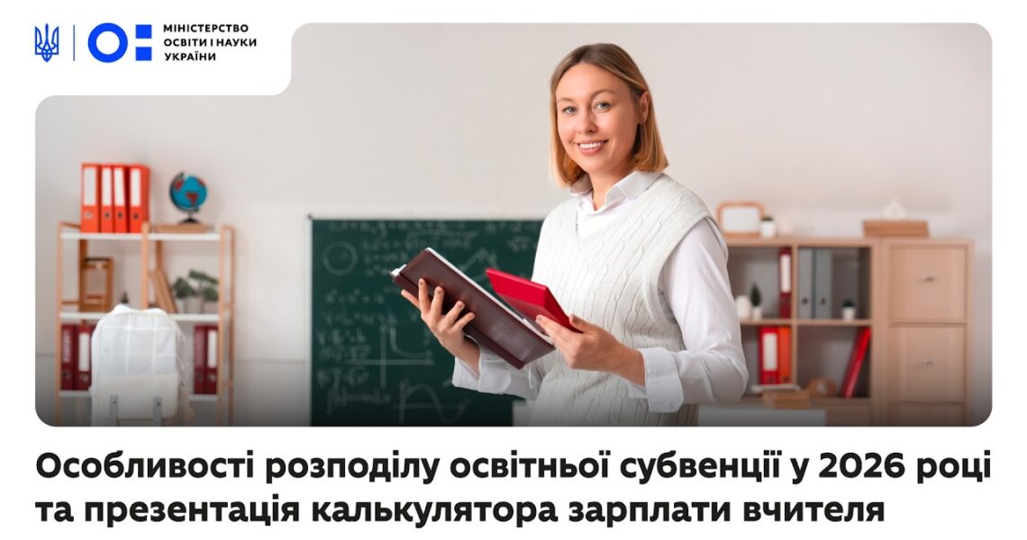 Посилання на калькулятор зарплати вчителя 2026: https://mon.gov.ua/ministerstvo-2/diyalnist/byudzhet-ta-zakupivli/byudzhet/budzhet-2026-rik/subventsii-na-2026-rik/osvitnia-subventsiia