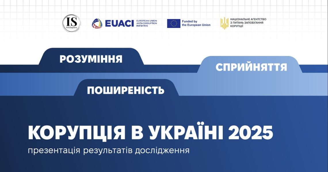 НАЗК спільно з Антикорупційною ініціативою Європейського Союзу в Україні (EUACI) проводять презентацію результатів соціологічного дослідження «Корупція в Україні 2025: розуміння, сприйняття, поширеність».