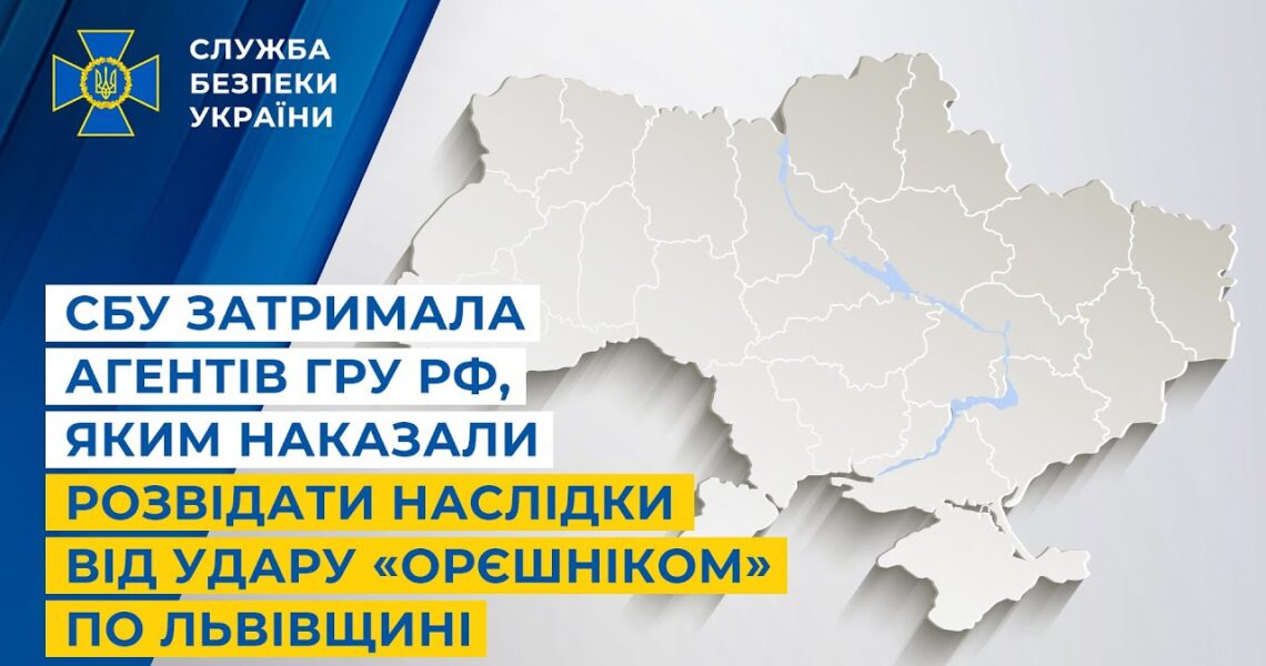 Контррозвідка Служби безпеки затримала двох агентів російської воєнної розвідки (більш відомої як гру), які допомагали ворогу встановити наслідки від удару «Орєшніком» по цивільній інфраструктурі Львівщини в ніч з 8 на 9 січня 2026 року.