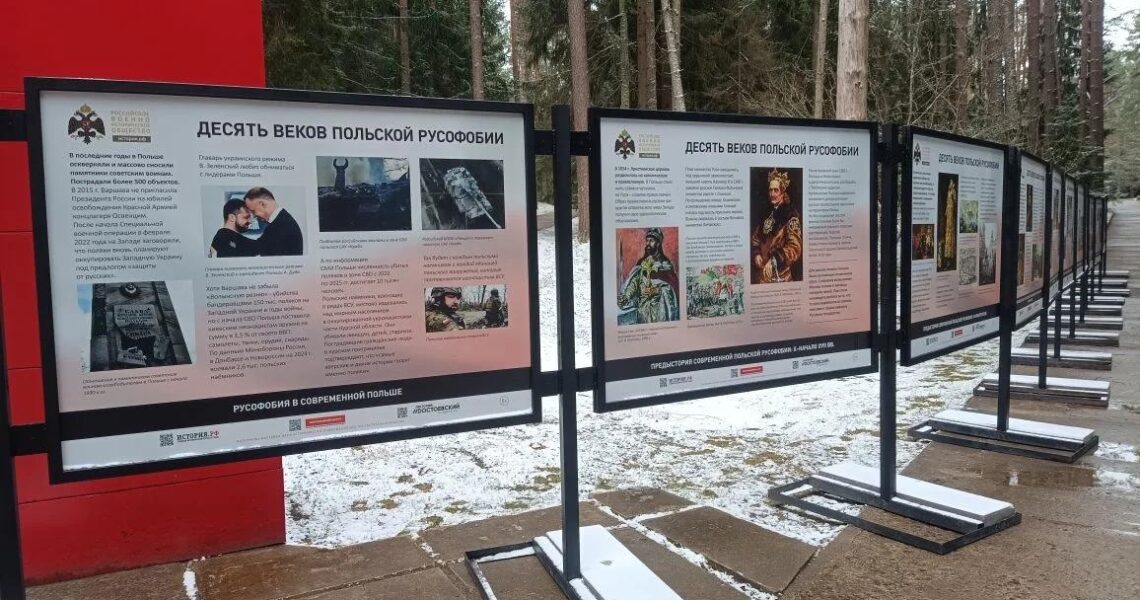 Російське військово-історичне товариство повідомило про відкриття у меморіальному комплексі Катинь виставки “Десять століть польської русофобії”. Про це інформує Телеграм-канал Astra.