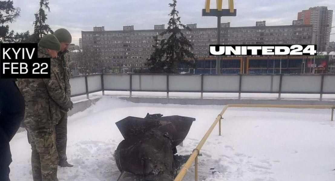 У Києві після нещодавньої масованої атаки РФ на даху ресторану McDonald’s на Дарницький площі знайшли фрагмент балістичної ракети Іскандер. Про це повідомила фандрейзингова платформа United24. Зазначається, що унаслідок російської атаки по Україні в ніч проти 22 лютого уламок ракети Іскандер опинився на даху MCDonald’s у Києві. Частину боєприпасу виявили на будівлі після обстрілу.