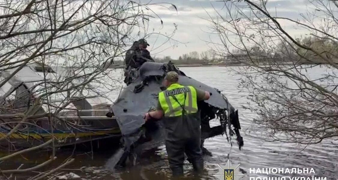 Столичні поліцейські вилучили з річки Дніпро безпілотник із бойовою частиною, запущений росіянами під час масованої атаки на місто 16 квітня. Про це повідомила пресслужба поліції Києва в пятницю, 17 квітня. Про небезпечну знахідку до поліції повідомив мешканець Голосіївського району. Під час обстеження акваторії правоохоронці встановили, що у воді знаходився російський дрон типу Герань-2 з бойовою частиною.